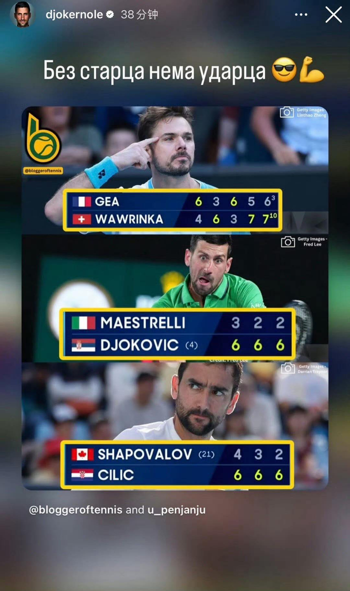 被广泛认为是签表炸弹的胡尔卡奇不敌奎因止步,而两位老将瓦林卡和西里奇都晋级,着实让人兴奋,尤其是前赛会冠军是历经决胜盘抢十逆转,获胜后赛场内掌声雷动。就连德约,也在赛后转发了三人同时获胜的比分截图,让人肃然起敬。