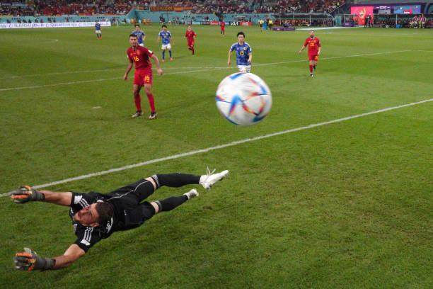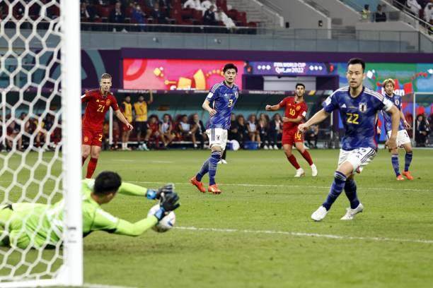 世界杯E组第3轮,日本队在赖扬 哈利法国际体育场2比1逆转西班牙队,以小组头名出线。德国队虽然4比2战胜哥斯达黎加,但因为净胜球比西班牙少,只能排名第三,饮恨出局。